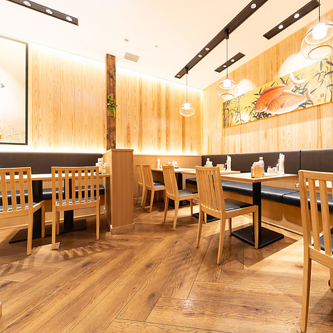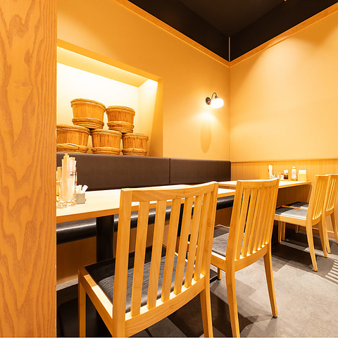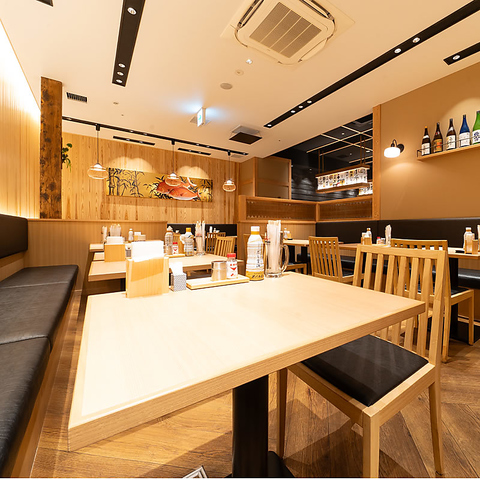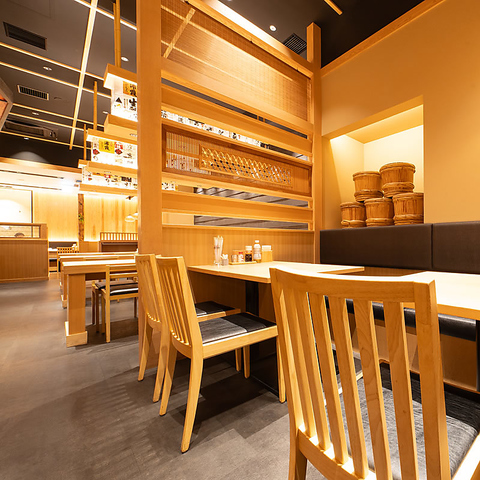 明るい照明が照らす広々とした店内には、少人数から大人数まで対応可能なテーブル席をご用意しております。ご家族でのお食事をはじめ、女子会、宴会など様々なシーンで気軽にご利用いただけます。羽田空港をご利用の際は、ぜひお立ち寄りください。