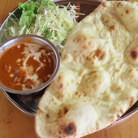 スパイスの香りが食欲をそそる本格カレーと、大きい焼き立てナンの最強コンビ。熟練のシェフが丹念に練り上げ、高温のタンドール窯で一気に焼き上げるナンは、外はパリッと中はふわふわの食感です。カレーの深いコクをナンのほのかな甘みが引き立てる、ボリューム満点で大満足間違いなしのセット。