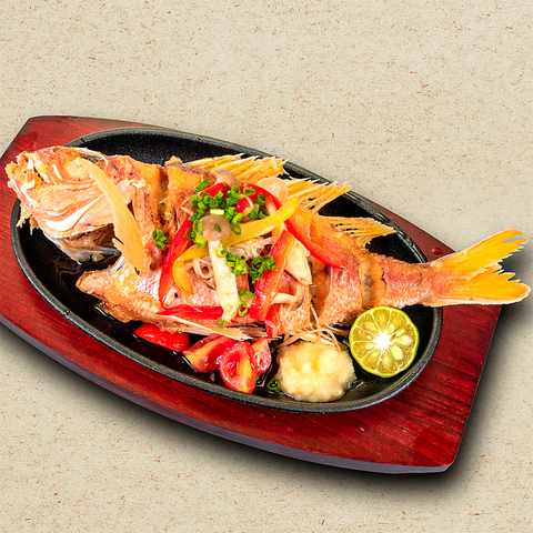 朝市直送の新鮮な地魚を、毎日、大量入荷!そんなイマイユ(鮮魚)丸ごと一本を、沖縄の家庭料理ではおなじみのバター焼きでご提供します。当店自慢のイチ押し海鮮料理です。※入荷するお魚は、日替わりです。詳細は、店内にある別紙メニュー「本日のおすすめメニュー」にてご案内。お気軽にお尋ねください。