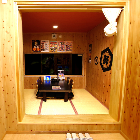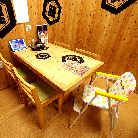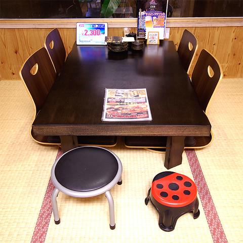 座敷席なら小さいお子様ご同伴でも安心。子供用イス利用可。人気のお席。ご利用の際は、お早目のご予約を。