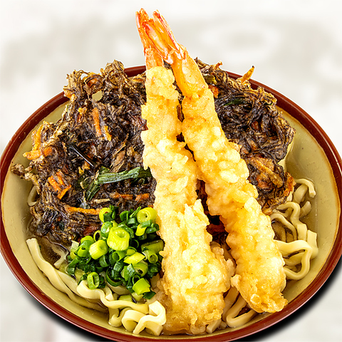 「豚骨」と「カツオ節」でダシを取ったスープに、「海老」と「もずく」の天婦羅を浸して食べるとたまりません。