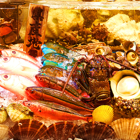 沖縄県内各漁港のセリ権を持っているので、毎日、新鮮な魚介類を大量入荷!仕入れ担当が頑張っています!鮮魚台の魚介類は、日替わりですので、「本日のおすすめメニュー」として店内でご案内しています。詳しくは、スタッフにお声掛けください。