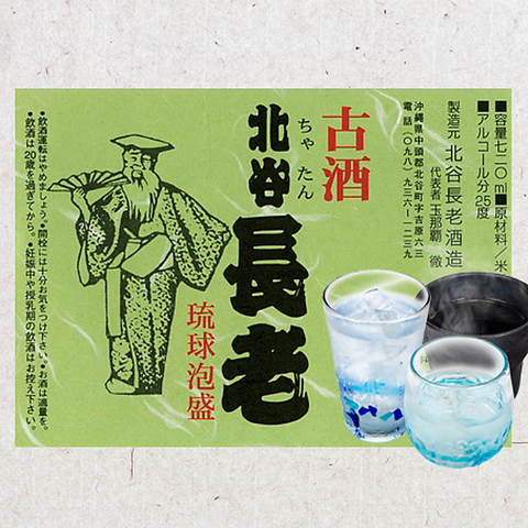 花酒泡盛(グラス)高い度数の泡盛。沖縄旅行の土産話に1杯いかがですか? ALL1,480円(税込1,628円)