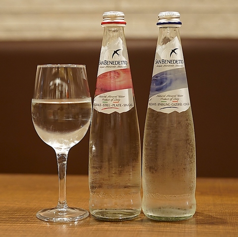ヴェネツィアの北西に位置するスルツェで採水された天然のミネラルウォーター。硬すぎず柔らかすぎないニュートラルな味わい。スティル:¥550 / スパークリング:¥550