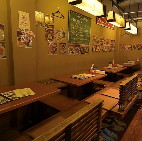 沖縄の古民家のような、どこか懐かしいレトロな雰囲気が魅力の店内です◎ゆったりと寛げる掘りごたつ席は、足を伸ばせるので長時間の滞在でも疲れにくく、女子会や各種宴会にもぴったりです。美味しい料理と温かい空間で、日頃の疲れを癒してください♪