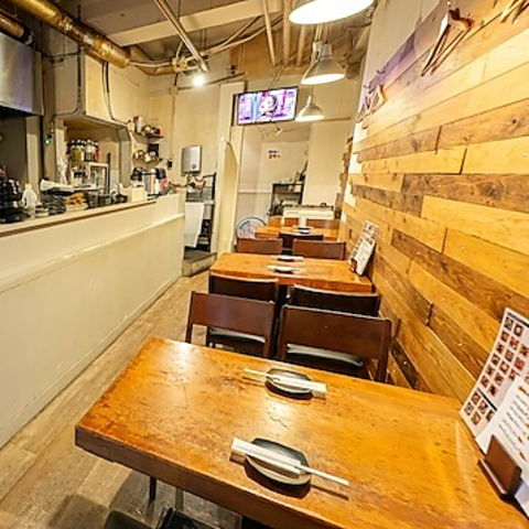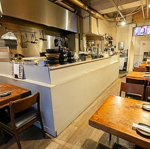 【駅近×アットホーム】明るく賑やかな雰囲気が魅力の店内は、1階にオープンキッチンを備えています。スタッフとの距離も近く、会話が自然と生まれるアットホームな空間です。テーブル席は席間が広く設計されており、ゆったりとしたひと時をお過ごしいただけます。お一人様や団体でのご利用、貸切も承っております!