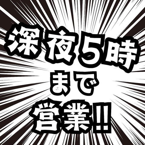 | カウンター | なし :カウンター席はございませんが、お一人様やサク飲み大歓迎◎朝5時まで営業◎ |