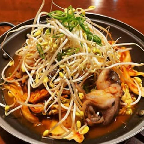 こだわった国産の豚バラを香ばしく焼いてお召し上がりいただけます。キムチ・サンチュ・エゴマ葉・ニンニク・オニオン・味噌のセット付。ボリュームたっぷりの飲み放題付4,600円コースもございます。サムギョプサルやタコ鍋など人気メニューを一度に堪能!大人数でのお食事や宴会にもぴったり。