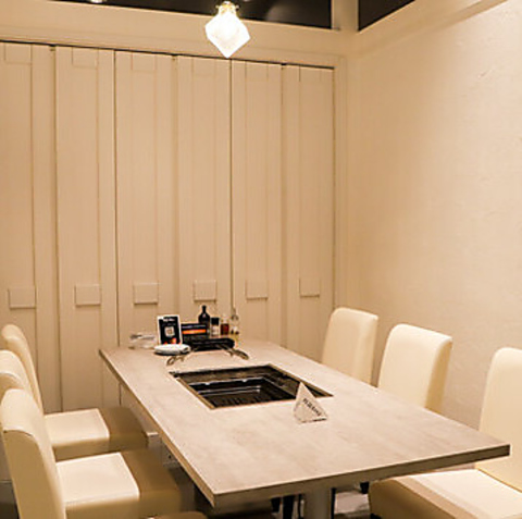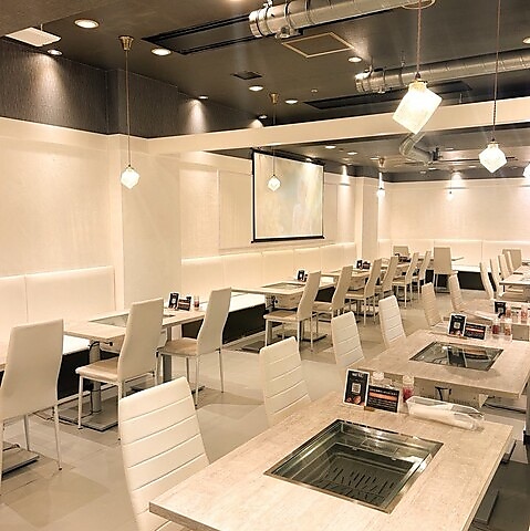 【北欧風のお洒落な空間】白を基調とした清潔感あふれるモダンなデザインが魅力。従来の焼肉店のイメージを覆すカフェのような雰囲気で、女性同士のランチやデートにも最適です◎広々としたソファー席や完全個室も完備しており、チャージ料なしでゆったりと腰を落ち着けてお食事をお楽しみいただけます。