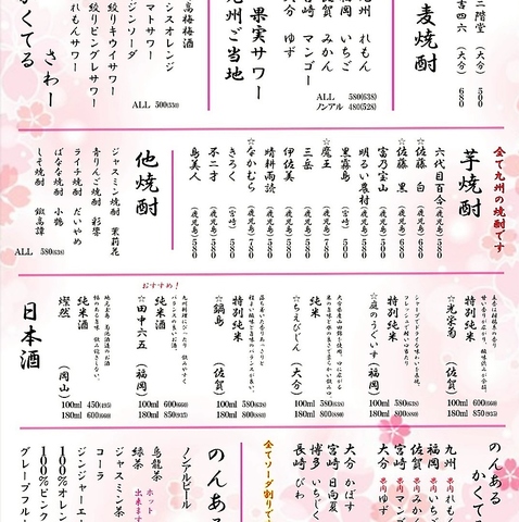 ドリンクメニュー | 九州料理桜花 - クーポン・予約のホットペッパーグルメ
