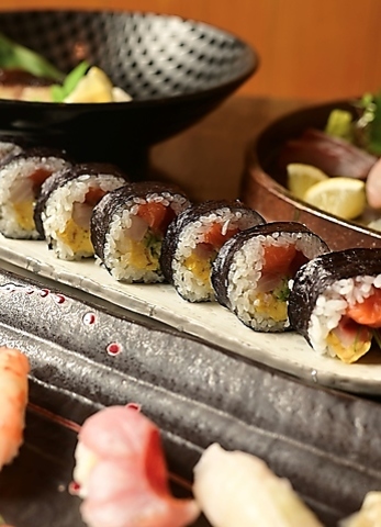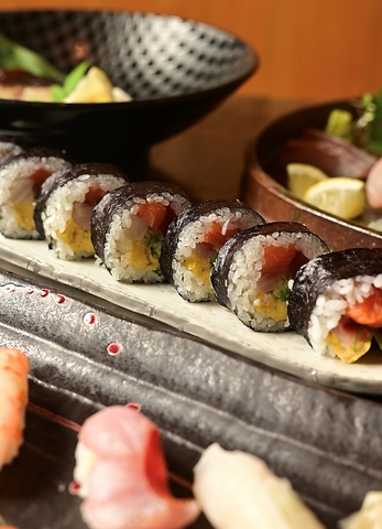 握りやお造りはもちろん、巻きずしや一品料理もご好評いただいております。ヘルシーで日本酒のすすむお料理をお楽しみください。その時々に一番旬の食材を仕入れておりますため、来店時期によって一品料理の内容が変動します。