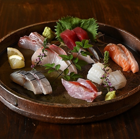 全国各地から仕入れた、その時期一番美味しい旬の魚介を盛り合わせにしました。鮮度抜群のネタは、醤油をつけずにそのまま食べても絶品。
