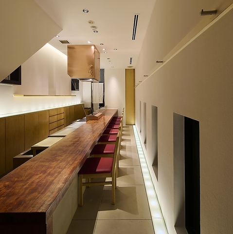 座席はカウンター8席のみ。限られた席数だからこそ、一人ひとりのお客様に寄り添った丁寧なおもてなしと、ゆとりあるひとときをご提供いたします。