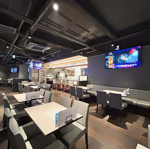 奥行きのある店内。テーブル席やゲーム専用席などもご用意。綺麗でゆったりした店内で思う存分楽しんでいただけます。お一人様から最大57名様着席可能です。立食パーティーなら100名様も♪宴会・忘年会の2次会、結婚式2次会、コンサートやライブ帰りのファンミーティング等に大人気です。