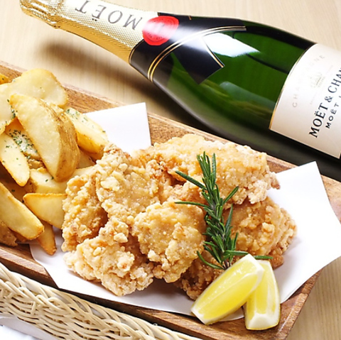当店人気のピザは丁寧に生地をのばして作る本格派!生地は、ふんわりもちもち♪当店1番人気の『マルゲリータ』を始め、3種類ございます!その他、定番の唐揚げやパスタ、カクテルに合うチョコレートなど、ごんなご利用シーンでもお使いいただけるようご用意しております!3時間飲み放題・投げ放題・歌い放題プランあり◎