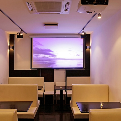 店内奥には、100インチの大型プロジェクターを完備しております。結婚式の二次会では思い出の写真やムービーを流して感動のひとときを演出したり、誕生日や記念日のパーティー、スポーツ観戦など、さまざまなシーンでご活用いただけます!プロジェクターはお客様のご自由にお使いいただけますので、ぜひお気軽にお問い合わせください。