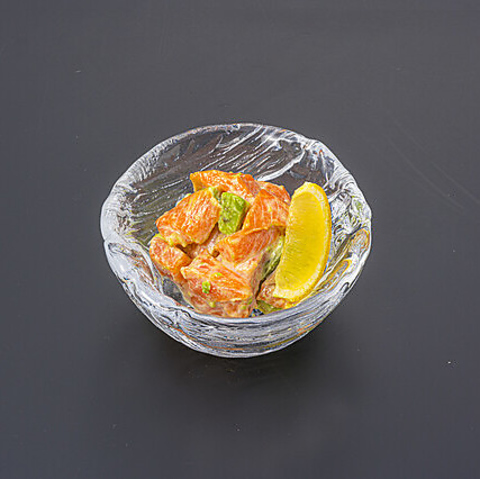サーモンの脂の甘みと、炙ったことによる香ばしさが絶妙に調和しており、食べるたびに口の中で広がる風味が楽しめます。また、見た目にも美しい盛り付けです。