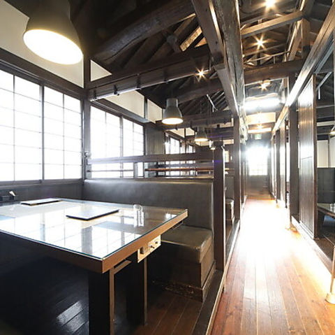 古民家風の落ち着いた雰囲気が漂う店内は、訪れる人々に心の安らぎを提供します。合掌造りを思わせる高い天井が開放感を生み出し、広々とした空間でくつろぎのひとときを楽しむことができます。カウンター席やテーブル席、さらに座敷掘りごたつ席も完備しており、友人や家族と一緒に過ごすのにぴったりな場所です。