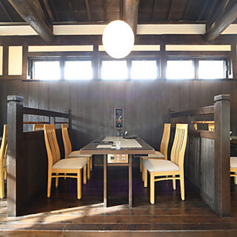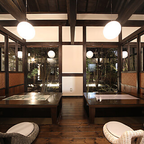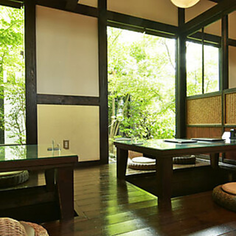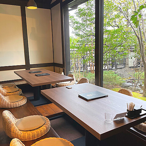 半個室で心地よいひとときを。プライベート感を大切にした空間。友達とのおしゃべりや、大切な人とのディナーにぴったりの場所だよ♪ 窓から見える緑豊かな景色が心を癒してくれる。落ち着いた雰囲気の中で、料理を楽しみながら、ゆっくりとした時間を過ごせるのが魅力です。