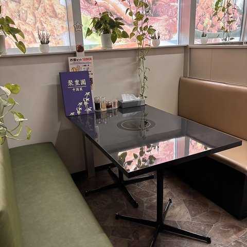 少し離れにある、プライベート空間を楽しめる5名掛けテーブル席も。
