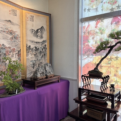 店内には、店主が自ら手がける盆栽を丁寧に飾っています。繊細な緑に心が和む空間で、ゆっくりとお食事をお楽しみください。