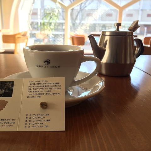 ポットでたっぷりカップ2杯分をご提供!冷めにくく、ゆっくりとコーヒーを楽しめるのが嬉しいサービスです。その日の気分や好みに合わせて選べるよう、常時4~5種類の新鮮な豆をご用意。お気に入りの一杯を、時間をかけてお楽しみくださいね!