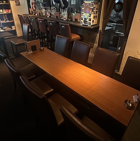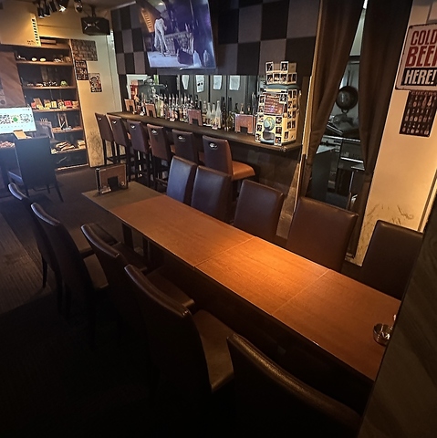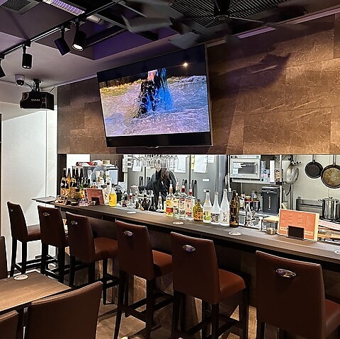 バーテンダー気分でお酒を楽しめる特等席。豊富に並ぶボトルを眺めながら、100種以上のドリンクを気軽に注文できます。お一人様のちょい飲みはもちろん、スタッフとの会話も楽しめるのでリピーターも多数。モニターを見ながらゆったりと過ごせる空間は、仕事帰りの一杯や二次会の利用にも最適です。