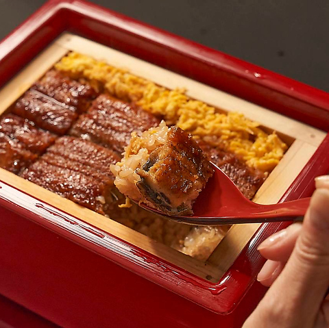 福岡県柳川発祥の郷土料理。タレをまぶしたご飯の上に錦糸卵と蒲焼を乗せ、せいろで蒸しあげています。