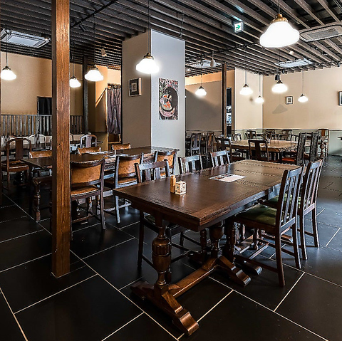 天井が高く広々とした店内は、窓から自然光が差し込み開放的な雰囲気に。2名など少人数から団体様と幅広い人数に対応しております。特別感のあるお部屋で、ゆったりとしたひとときをどうぞ。また貸切のご案内も可能ですので、各種宴会等にも最適です。様々なシーンでお使いいただけます。