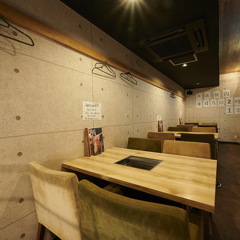 【貸切でのご利用は事前にお問い合わせください!】特別なイベントやパーティーに最適なプランをご提案させていただきます!埋め込み式のロースター完備でにおいや脂の飛び散りも気にならないので、女性のお客様にも好評です◎おしゃれな空間で、美味しい焼肉を囲み楽しいひとときをお過ごしいただけます。