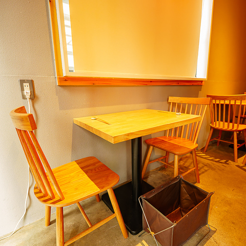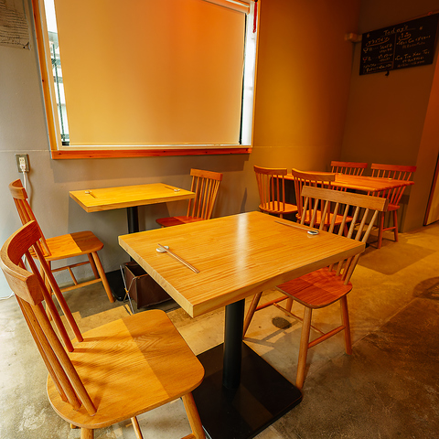 スタイリッシュなテーブル席4席を2つご用意しており、友人同士にママ友や女子会、または家族と一緒にリラックスしながらお食事を楽しむのに最適な空間です。落ち着いた雰囲気の中で、ゆったりとした時間をお過ごしいただけます。