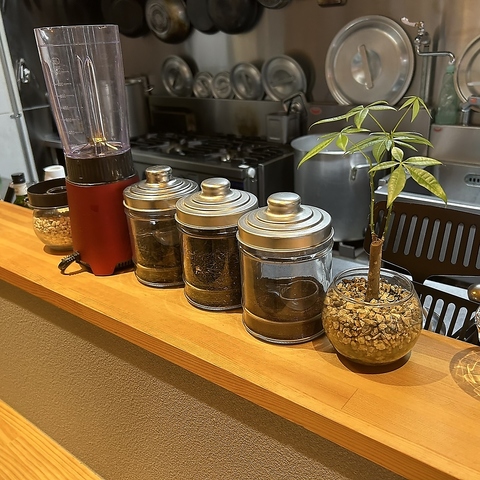 カウンターの上には、小さな観葉植物やベトナムらしい雑貨がさりげなく並び、食事のひとときに彩りを添えてくれます。落ち着いた木目のカウンターに映えるグリーンや異国の小物たちは、店主のセンスと温かさを感じさせる存在。料理だけでなく、空間の細部にもベトナムの風を感じられるのが、このお店の魅力のひとつです。