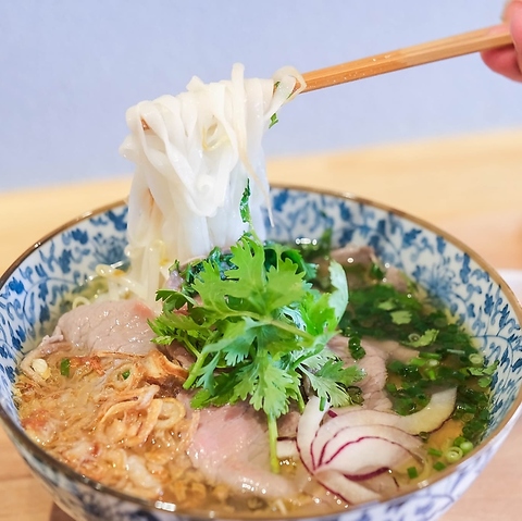 ベトナムでも使用されている本格的なスパイスやソース、香草を巧みに使いながらも、日本人に合わせて丁寧にアレンジされたベトナム料理を楽しめます。刺激的な辛さを抑えたマイルドな味わいは、お子様からご年配の方まで、幅広い世代の方々におすすめです。また、パクチーが苦手な方には、ご要望に応じてパクチー抜きでのご提供も可能です。