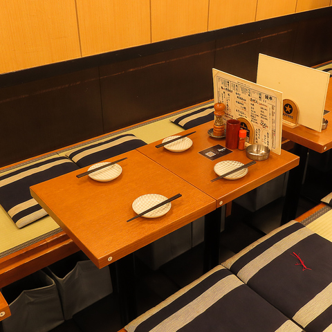お料理を楽しむのに最適な、ゆったりくつろげるテーブル席を完備。ご友人や同僚、お仲間と、楽しい会話と美味しい料理をご堪能いただけます。アットホームでゆったりと過ごせる雰囲気が魅力の掘りごたつ席もございますので、ご年配の方やお子様連れにも気兼ねなくご利用いただけます。