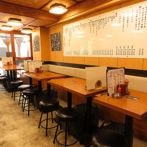 店内席数38席。気軽なテーブル席とくつろぎの掘りごたつ