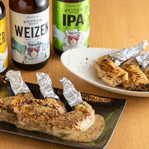 迷ったときにこそ選んでいただきたい逸品☆脂のりのバランスが良く、ジューシーで旨味あふれる国産大山鶏を使用。熟練の店主がカウンターで丁寧に炭火焼きにするので、香ばしい香りが食欲をそそります。骨が抜いてあるのでそのままガブリと豪快にかぶりつけます!味は4種類から選べ、どれも絶品!是非ご賞味ください。