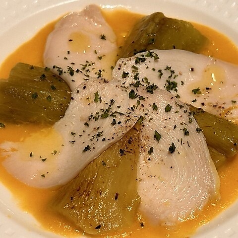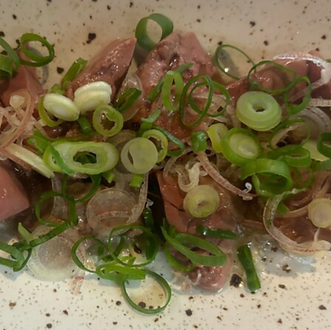 当店で大人気のねっとり鶏レバーの香味漬けは、初めての方にもおすすめのメニュー!じっくりと低温で火を入れることで、レバー本来の旨味を最大限に引き出し、驚くほどしっとりとした舌触りに仕上げました。薬味のみょうがやネギが、レバーの濃厚な味わいを引き立て、さらに食べやすく美味しさをアップさせています。