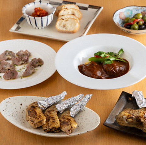 「板前vsシェフ」をコンセプトに、熟練の和食板前と洋食シェフが、それぞれの技と感性で鶏肉の美味しさを最大限に引き出します。繊細な出汁が香る和風鶏料理から、ハーブやスパイスが食欲をそそる洋風鶏料理まで、気分に合わせてお好みの鶏料理を心ゆくまでお楽しみいただけます。「洋食シェフ」vs「和食板前」お好きな鶏肉をご堪能ください♪