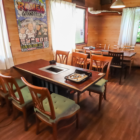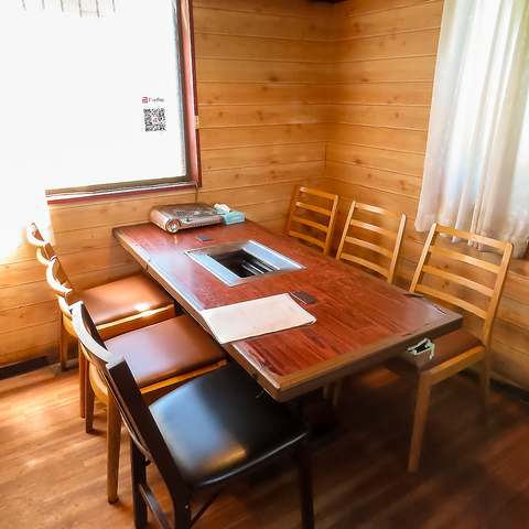 広々としたテーブル席は、6名様掛けが2卓ございます。ご友人との気軽な食事や、ご家族でのご利用に最適です。ゆったりと落ち着いた空間で、当店自慢の美味しい焼肉と楽しい会話を心ゆくまでお楽しみください。