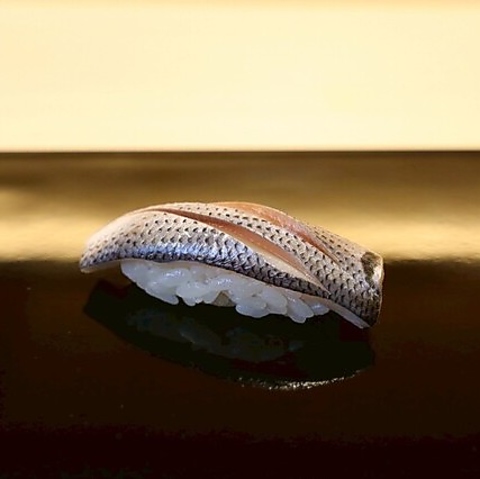 鮨の命とも言われるシャリ。当店で使用しているお米は、旨味と粒感に特徴がある、宮城県産ひとめぼれ。そしてお酢は、鎌ヶ谷にある私市醸造の赤酢と米酢をブレンドして使用。食感はシャッキリしていて粘りが少ないため、香りの良さと、口に含んだときの心地良いほどけ方を味わっていただけます。最高の一貫を、ぜひご賞味ください。