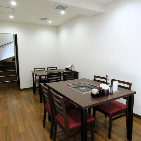 1階はテーブル席、2階は座敷席があり、どちらも快適に過ごせるよう配慮された空間です♪座敷では靴を脱ぎ、リラックスしながら焼肉を楽しむことができるため、ご家族連れのお客様などにおすすめです◎2階への階段には手すりを設置しており、安全面にも配慮しています。心地よい雰囲気の中で焼肉をお楽しみ下さい!