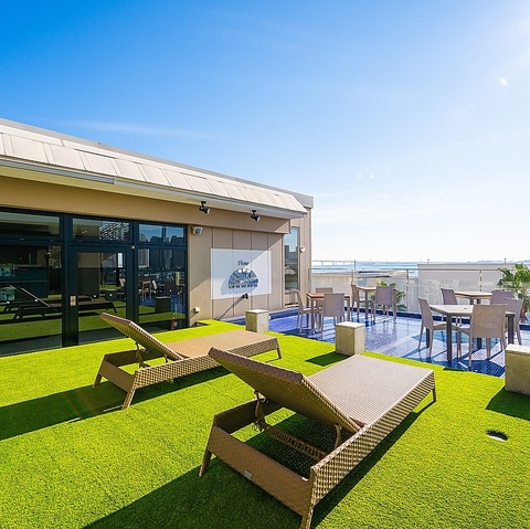 お食事後には、みなとみらいが一望できるインフィニティチェアでくつろげます!