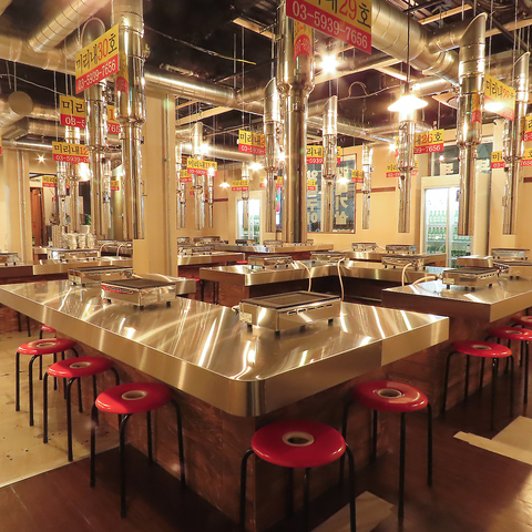 【自慢の空間】各テーブルに焼き台が設置されており、それぞれスタッフがついて目の前で完成までお料理を作らせていただきます♪気さくなスタッフとの会話もミリネヤンコプチャンに来る楽しみのひとつ!スタッフだけでなくおとなりさん、お店のみんなと仲良くなって帰ってください★