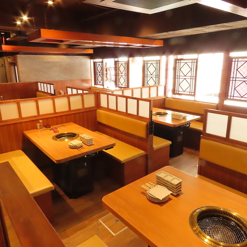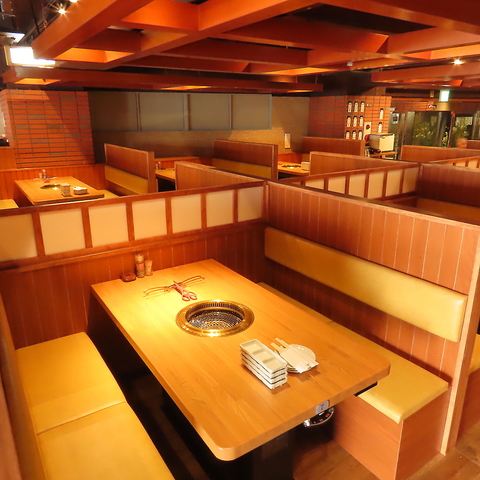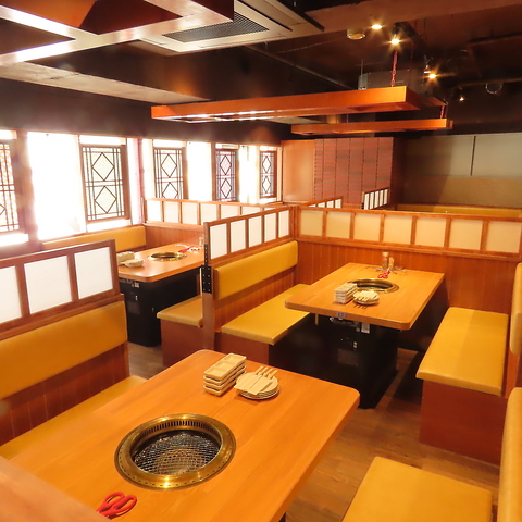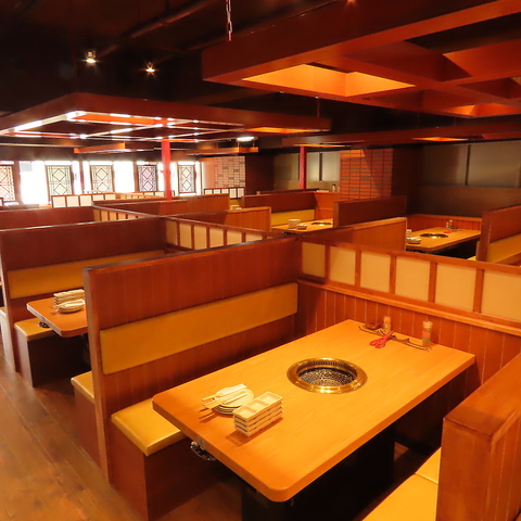 広々した店内では焼肉宴会を承っております!会社宴会・歓送迎会・慰労パーティー・決起会にもおすすめ◎焼肉コースは食べ放題・飲み放題でのご提供。自慢の焼肉のほか、サラダや唐揚げなどのサイドメニュー、ご飯ものやデザートも食べ放題!見通しのいいテーブル席でご注文もスムーズ。人数の多い宴会の幹事様にも安心です☆