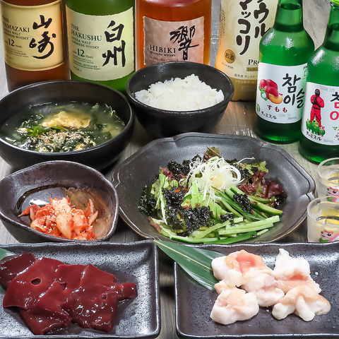 飲み放題2時間00分 ホルモン+お好きなお肉1品+サラダ+キムチ+スープ+ライス付き (ラストオーダ30分前) ※特上は選べません 生ビール付きは別途500円かかります