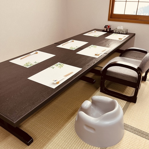 お子様連れのご家族には、ゆったりお過ごしいただける「座敷席」がおすすめ。お子様専用の椅子も完備。