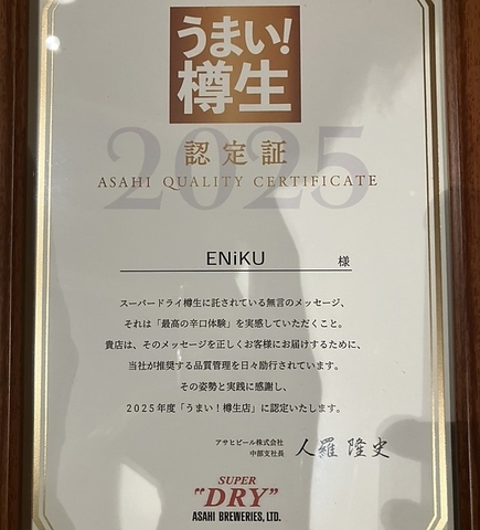アサヒビール様から認定を頂いた当店は、すべての料理がビールとベストマッチします!ぜひご堪能ください☆