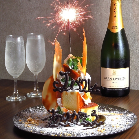 誕生日や記念日にはコース料理+デザートプレートの演出もOK!大切な1日を彩る落ち着いた空間です。