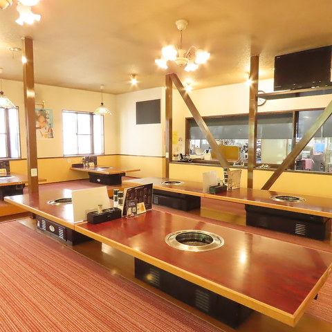 【座敷6人×6席】広々とした店内は、明るさと活気に満ちています!友達や家族と一緒に楽しむのに最適な座敷は、最大6人まで利用可能で、にぎやかに食事を楽しめます♪完全禁煙のため、煙を気にせずに食事を楽しむことができるこの場所で、心温まるひとときを過ごせます!美味しいお肉が待っているので、ぜひご利用ください