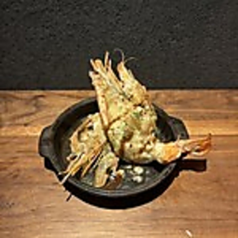 大きな海老をそのまま焼き上げました。にんにくバターがGood!!